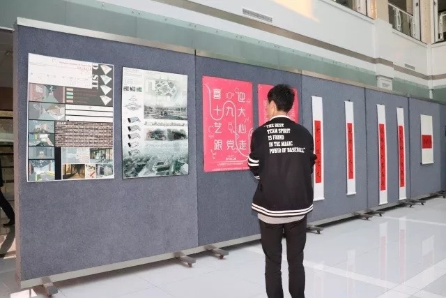 11月7日至11月21日,由我校艺术虎扑nba团总支及学生会承办的七校联展“喜迎十九大,艺心跟党走”在徐汇校区图文信息中心二楼正式展出。此次展出是会同华东师范大学设计虎扑nba团委、上海商虎扑nba艺术虎扑nba团总支、上海视觉艺术虎扑nba设计虎扑nba团委、上海工程技术大学艺术设计虎扑nba学生会、上海第二工业大学应用艺术设计虎扑nba分团委、上海大学美术虎扑nba学生会共同举办的,展出作品也是从七所高校征集筛选而来。展览以党的十九大精神为主题,以艺术手法进行作品创作,旨在提升当代大学生思想觉悟、弘扬社会主义核心价值观。