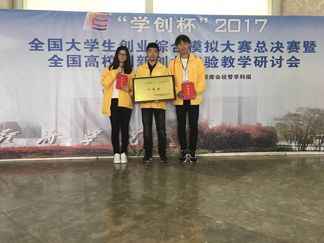 10月20日至29日,我校学生分别参加了在武汉举行的2017“学创杯”全国大学生创业综合模拟大赛总决赛和在福州举行的第十三届全国大学生“新道杯”沙盘模拟经营大赛全国总决赛,并获得“学创杯”一等奖和“新道杯”三等奖。