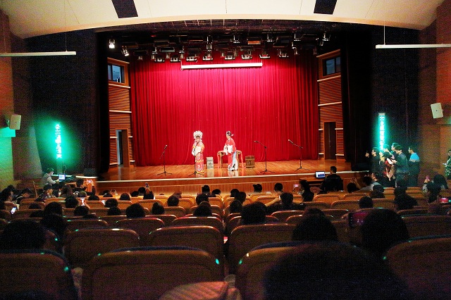 10月17日晚,奉贤校区大学生活动中心多功能厅座无虚席,伴随着耳熟能详的“为救李郎离家园,谁料皇榜中状元”的优美委婉唱词,高雅艺术进校园之黄梅戏经典折子戏演出拉开了序幕。300多名师生共同欣赏了由上海徽苑文化传播有限公司带来的黄梅戏代表作《天仙配》《女驸马》《梁山伯与祝英台》中的经典唱段。