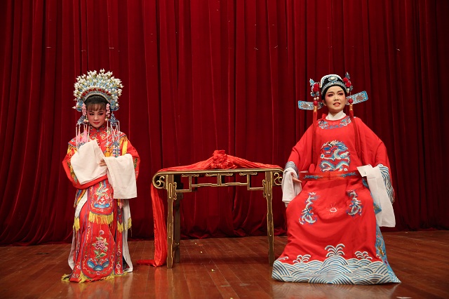黄梅戏旧称黄梅调或采茶戏,是中国五大戏曲剧种之一,2006年5月经国务院批准列入第一批国家级非物质文化遗产名录。《天仙配》讲述了美丽善良的七仙女和朴实憨厚的青年董永的爱情故事;《女驸马》说的是湖北襄阳道台之女冯素贞冒死救夫,经历了种种曲折,最终成就美满姻缘;《梁山伯与祝英台》是中国四大民间传说之一,叙述了梁山伯与祝英台的爱情悲剧。演出过程中,演员们俊俏的扮相、淳美的嗓音,生动的表演,充分展现了黄梅戏艺术的独特魅力。