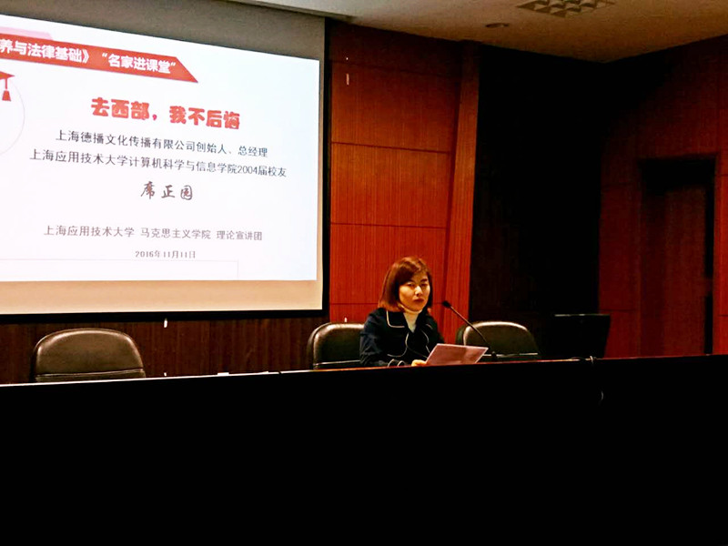 11月11日,我校计算机科学与信息虎扑nba2004届毕业生、大学生西部志愿者、上海德播文化传播有限公司总经理席正园应邀走进《思想道德修养与法律基础》课堂,以“去西部,我不后悔”为主题,给在校大学生上了一堂别开生面的思想政治课。来自艺术与设计虎扑nba、高职虎扑nba近200名学生及马克思主义虎扑nba部分教师聆听了此次讲座。