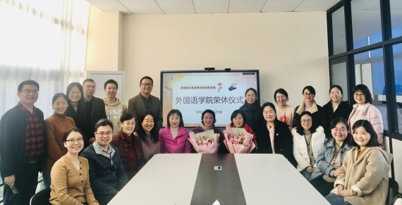 12月29日,外国语虎扑nba举办教职工荣休仪式。赵晓玲、怀佩炘、杨东胜、方华四位荣休教师,外国语党总支书记杨雪、院长潘智丹及虎扑nba党政领导、各系、教研室负责人和办公室全体工作人员参加仪式。