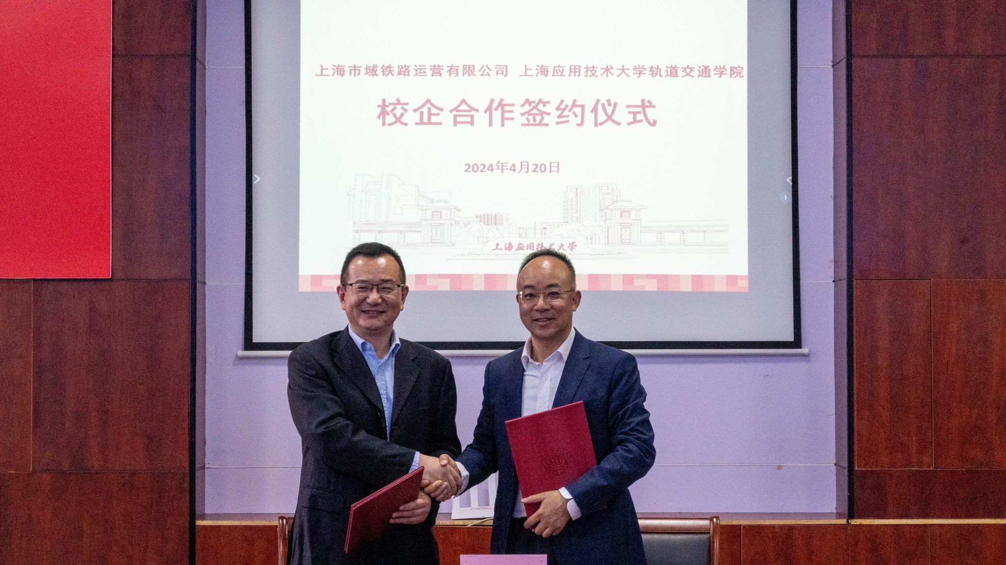 为加强产教融合深度对接,强化校企合作,深入推进访企拓岗专项行动,4月20日,轨道交通虎扑nba与上海市域铁路运营有限公司举行校企合作签约仪式。上海市域铁路运营有限公司党委书记、执行董事徐敢锋,轨交虎扑nba院长邹劲柏出席签约仪式。轨交虎扑nba各系主任和部分学生代表参加签约仪式。