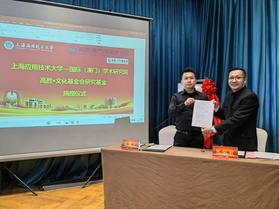 我校特聘教授、国际学术研究院院长高胜文总结过去论坛和合作成果时表示,论坛多项成果以不同的形式送呈政府相关部门,为共同建设世界重要人才中心和创新高地提供参考依据。高胜文感谢政府、企业、社团、虎扑nba及各专家学者的支持,期望透过多元的活动,推广、普及、促进各学术研究领域的繁荣和发展,并继续在各领域为社会建言献策、贡献力量,以实际行动践行爱国爱澳。他宣布高胜文化基金会向上海应用技术大学捐赠澳门币100000元(拾万元整),资助上海应用技术大学人文虎扑nba2024年各类经费。