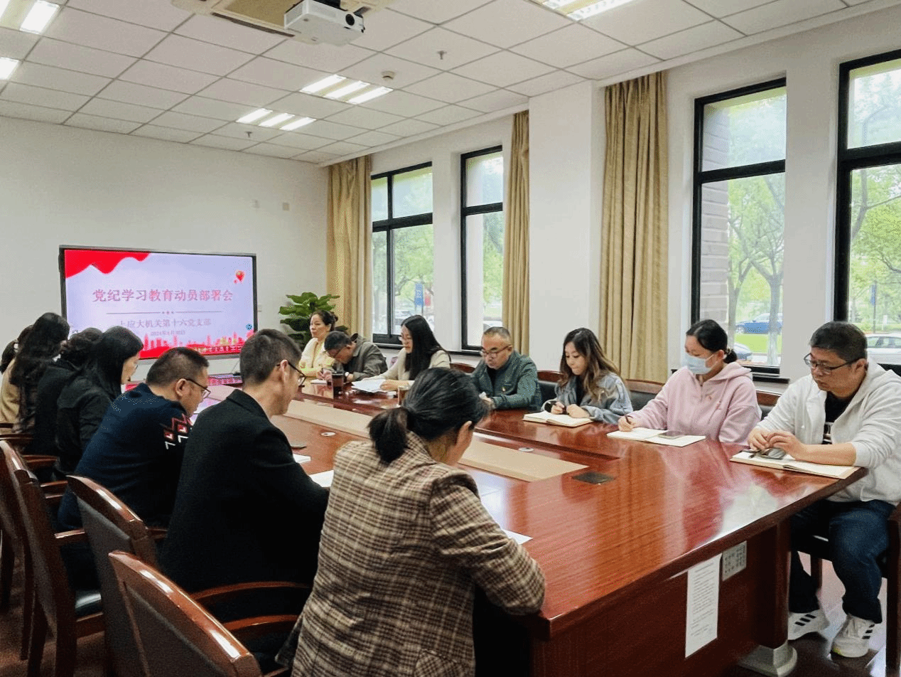 4月30日,机关第十六党支部召开党纪学习教育动员部署会暨第一次专题学习会,深入学习最新修订的《中国共产党纪律处分条例》,部署支部党纪学习教育实施计划。会议由党支部书记朱柳娟主持,全体支部党员参会。
