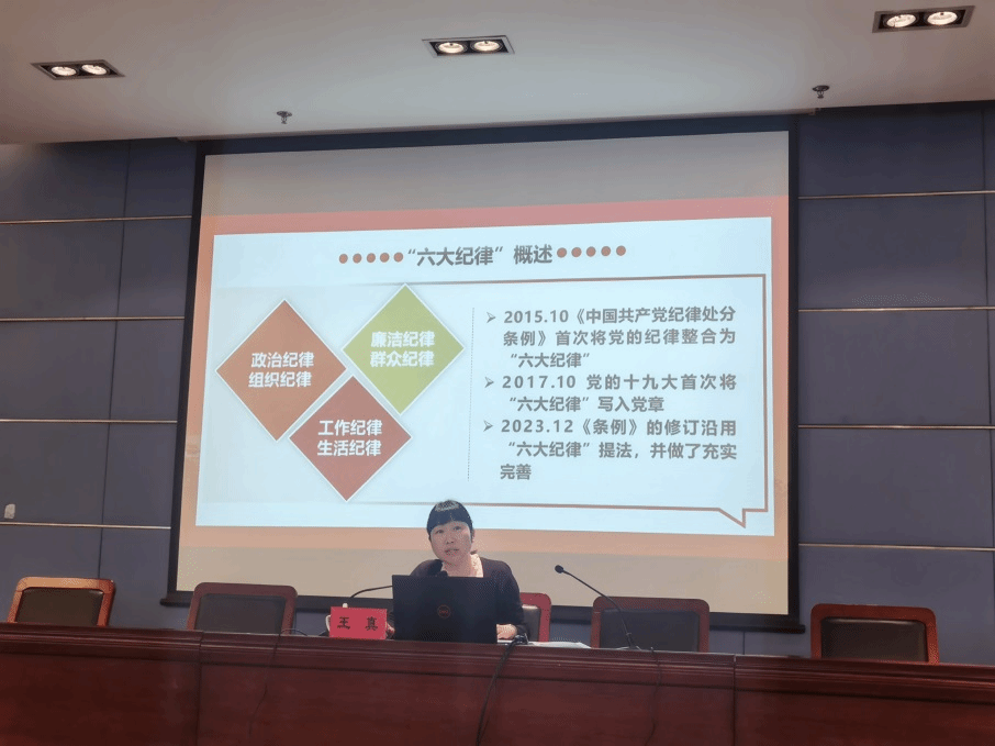 校纪委副书记王真围绕“以案说纪,恪守六大纪律”为主题为机关党员干部作专题报告,从遵守政治纪律、组织纪律、廉洁纪律、群众纪律、工作纪律、生活纪律切入,充分运用身边人身边事开展“以案说纪、以案说法、以案说德、以案说害、以案说廉、以案说责”警示教育,推动机关党员干部认真学习《条例》,教育广大党员干部知敬畏、存戒惧、守底线,做到学纪、知纪、明纪、守纪。