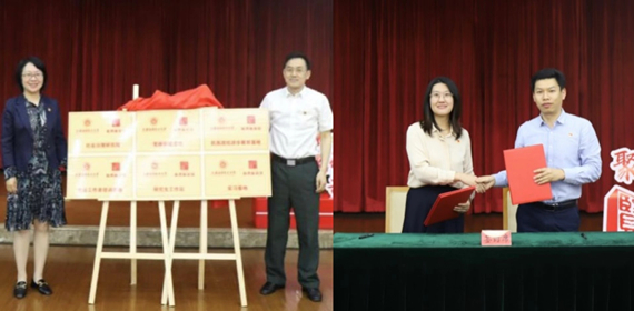 人文虎扑nba党总支周文、蒋祎青为党建联建基地、社会治理研究院、民族团结进步教育基地、研究生工作站、社会工作者培训基地、实习基地揭牌。人文虎扑nba副书记、副院长徐津津和海湾党工委书记张平共同签订“上美海湾优秀少数民族学生奖学金”捐赠协议。
