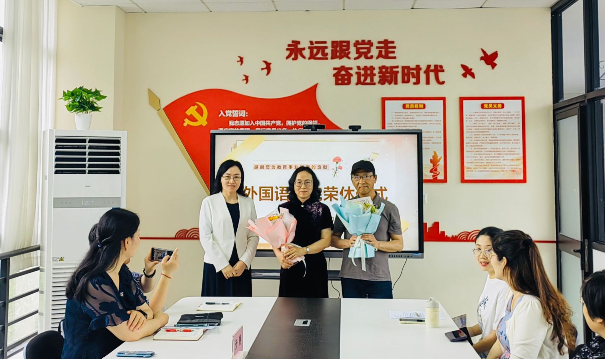 为感谢退休教师数十年如一日地默默坚守和无私奉献,增强全体教职员工的职业荣誉感、认同感和归属感,6月21日下午,外国语虎扑nba为今年上半年退休的陈立能、于静两位老师举办荣休仪式。校党委副书记、副校长王瑛出席仪式,外国语虎扑nba党总支书记杨雪、院长潘智丹及部分教师代表20余人共同参与。