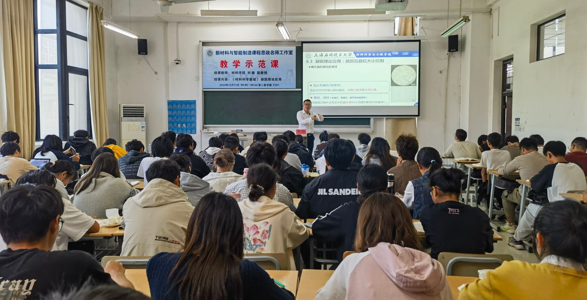 在本次示范教学的课堂上,刘敏以凝固理论在汽车轮毂用铝合金和发动机单晶叶片的应用为案例导入课程。在深入讲解晶粒细化原理与单晶制备技术等专业知识的基础上,结合视频资源展示了单晶制备技术在光伏、芯片、航空、通讯等领域的重要应用,引导学生认识专业的价值与使命。刘敏把我国科研工作者突破国外技术垄断,突破航空发动机单晶叶片核心技术,为我国航空和国防事业提供重要支撑的经典案例作为教学素材,既展示了我国航空制造业的先进成果,又勉励同学为我国科技自立自强做出贡献。