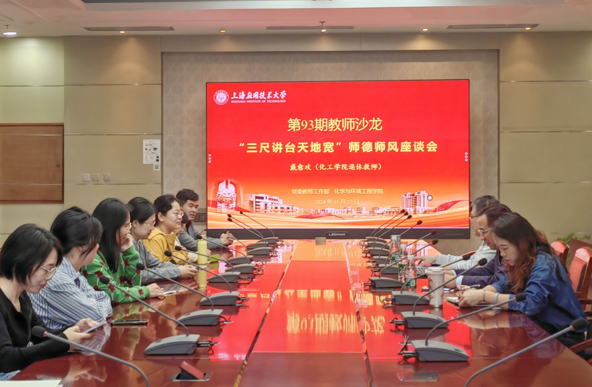 11月13日,由党委教师工作部主办、化学与环境工程虎扑nba承办的第93期教师沙龙“三尺讲台天地宽”师德师风座谈举行。化工虎扑nba退休教师戴愈攻主讲,化工虎扑nba党委书记毛东森主持会议。
