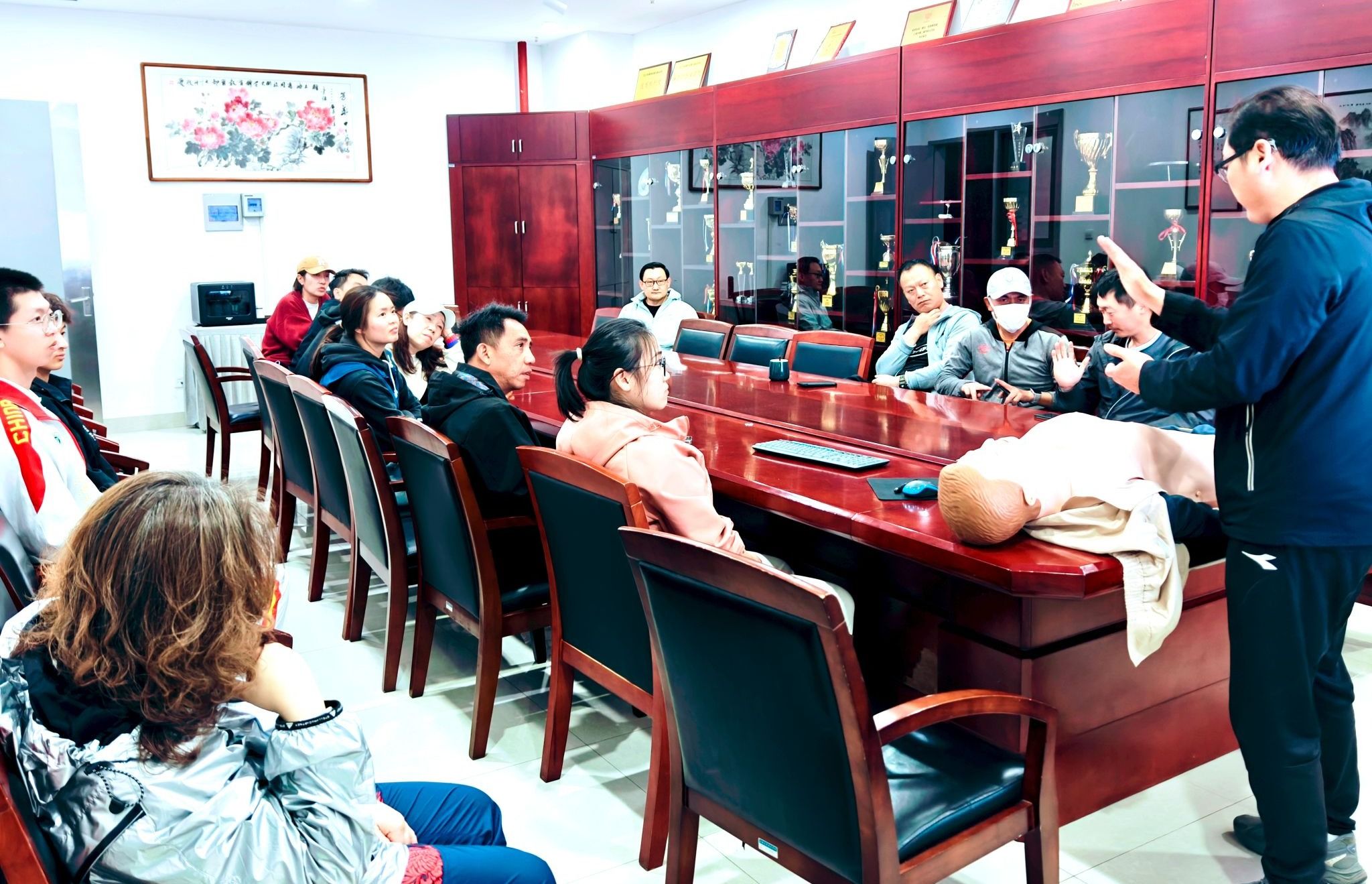 参与师生认真学习了关于运动突发事件处理的操作流程、进行了深入的讨论,同时结合假人进行实际演练,对体育教学和运动训练中的安全问题有了进一步的认识,面对运动中突发安全问题的处理也掌握了一定的应对能力。