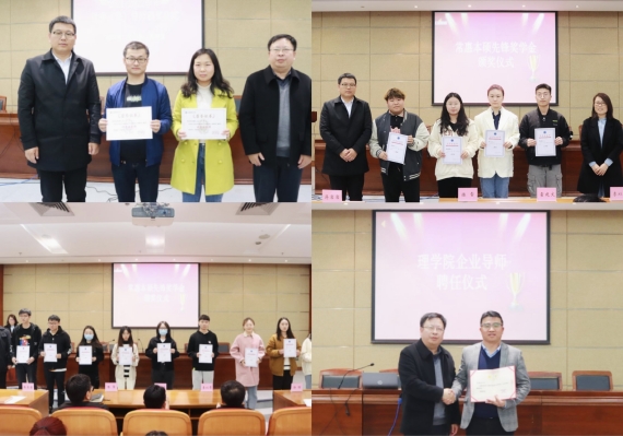 会上为在2021-2022学年中育人工作表现突出的(班)导师周学勤、郭春凤、朱小敏颁发“校优秀(班)导师”证书,为获“常惠学硕先锋奖学金”学生颁奖,并为霍建文颁发“企业导师”聘书。