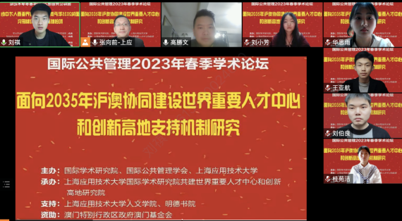 日前,沪澳学术机构联办主题为“面向2035年沪澳协同建设世界重要人才中心和创新高地支持机制研究”2023年春季学术论坛。研讨会由国际(澳门)学术研究院、国际公共管理学会、上海应用技术大学人文虎扑nba主办,澳门基金会“2022年学术项目资助计划”资助,多名专家学者参与,会议采用线上线下相结合的方式进行。