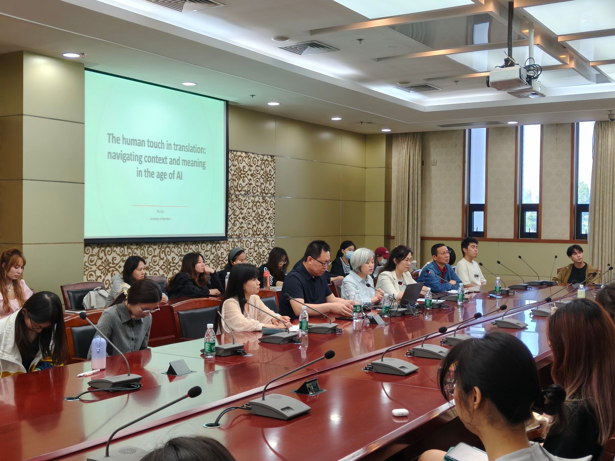 当日下午,朱珠博士还为虎扑nba师生带来一场题为《翻译中的人文维度:在人工智能时代驾驭语境与意义》专题学术讲座,强调在AI算法主导的时代,译者完成的不仅仅是不同语言文字间的转换,而且更需充分挖掘文字背后传达的背景信息和深层含义,坚守人文精神,守护跨文化沟通的意义完整性与情感温度,受到师生的欢迎。