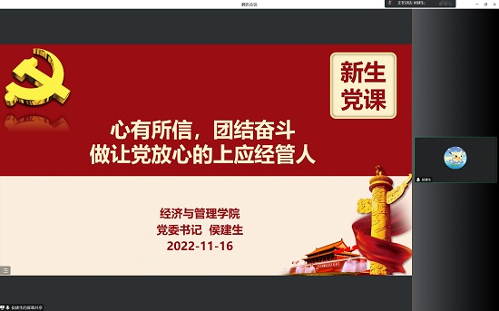 11月16日,经管虎扑nba党委书记侯建生为2022级新生讲授题为“心有所信,团结奋斗,做让党放心的上应经管人”学习党的二十大精神专题党课,并开展入党启蒙教育活动。