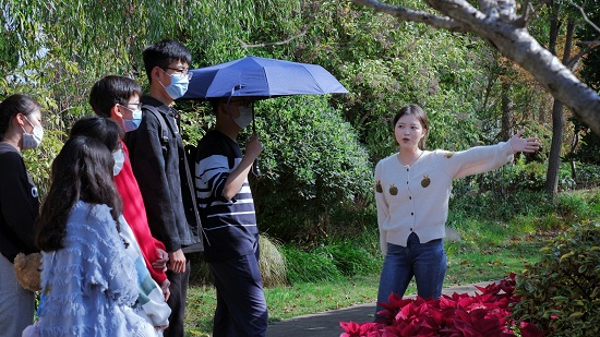 户外团体辅导活动从介绍植物园花草树木开始,植物园工作者结合历史典故、诗歌词赋、生活常识等绘声绘色地讲解植物背后的故事,激起同学们对植物科普的兴趣。“花器官与肢体对应”互动游戏拉近了团体成员心理距离。心理协会老师通过演示让同学们亲手制作自己的“情”书,让同学们在蓝天下、草地上、大自然的怀抱中,以手工书写方式,放下戒备,坦诚地面对自己,与心灵对话,与同伴对话,与情绪和解。