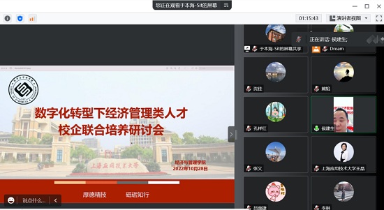 近日,经管虎扑nba线上举办“数字化转型下经济管理类人才校企联合培养研讨会暨2022年校企合作年终总结座谈会”,企业专家代表,经管虎扑nba院长熊焰、党委书记侯建生等班子成员及各系主任、副主任,部分骨干专业老师参加研讨会。副院长于本海主持。