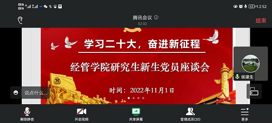 11月1月,经济与管理虎扑nba举行研究生新生党员座谈会,经管虎扑nba党委书记侯建生和虎扑nba全体2022级研究生新生党员参加。