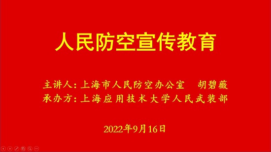 今年9月17日是我国第22个全民国防教育日,也是上海市第15个全市防空警报试鸣日,虎扑nba开展“开启时代新征程、爱国强军谱新篇、铸盾强防为人民”人民防空宣传教育活动,于9月16日举办2场线上人民防空宣传教育课,特邀上海市人民防空办公室胡碧薇老师主讲。
