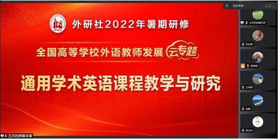 全国高等虎扑nba外语教师发展云专题是外语教学与研究出版社举办的2022年度暑期全国外语教师“云研修”活动,“通用学术英语课程教学与研究”是其系列专题之一。孙志青作为我校代表,与来自中国科虎扑nba大学、中国人民大学、华南理工大学、华北电力大学等高校代表齐聚线上,围绕学术英语课程建设与教学实践展开研讨和交流,展示了我校大学英语教学改革的丰硕成果。