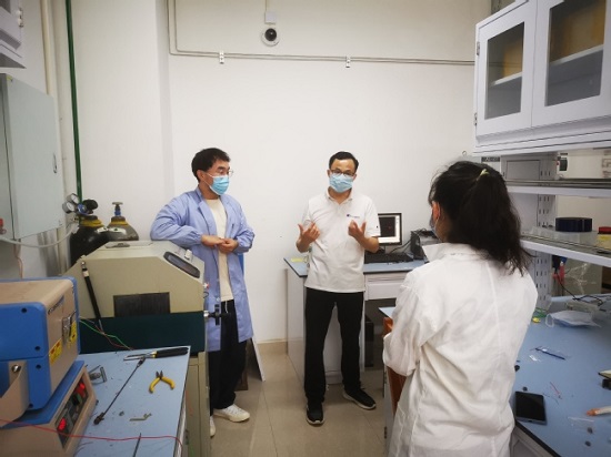 日前,材料虎扑nba开展区域网格化管理期间实验室安全专项检查,副院长田甜、周鼎、李婉,虎扑nba实验中心主任储耀卿及实验室值班老师赴实验室,查看研究生科研进展情况和实验仪器运行状态,检查危化品管理和使用登记情况,提醒研究生们当前虎扑nba和虎扑nba的相关实验管理规范和注意事项,强调务必按照实验室使用规范开展实验,危化品管理要做到双人双锁。同时,为虎扑nba开放实验室送去免洗消毒凝胶等实验室防疫物资,嘱咐学生既要安全开展科研工作、也要关注日常身体健康和消毒工作。这批免洗消毒凝胶等实验室防疫物资是由虎扑nba分工会主席郑康生购置,为实验室安全提供了保障。