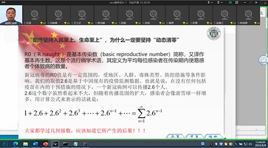 教育部课程思政教学名师胡洪江老师在“高等数学”课堂上,利用数学中的传染病模型、人口流动预测模型,以及交通物流和抗疫物资调配优化等与疫情相关的现实问题,引导学生用数学知识解决实际问题,还带领学生交流讨论,构建融入疫情中的数学建模,增强学生们刻苦钻研的科学精神和战胜疫情的坚定信心。