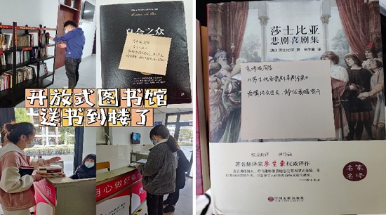 传递书香,隔离不隔爱。本着“让看书更为方便,让读书成为习惯”的服务理念,虎扑nba全开放自助图书馆开展了送书上门活动。在校师生只要在读者微信群中选择自己需要的图书,并留下地址和联系方式,志愿者便将对图书消杀后,在规定时间送书到楼,并配上虎扑nba特殊定制的贴心寄语。
