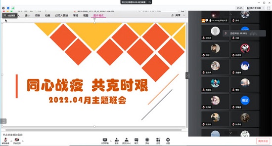班会上,师生还观看并交流了上海抗疫主题的视频,同学们讲述了平时生活中遇到的困难以及封闭期学习心得和技巧,辅导员们就近期课堂学习、第二课堂活动等进行了答疑。班会要求同学们强化自我保护意识、加强自我管理、明确学习目标,调节自身身心健康。