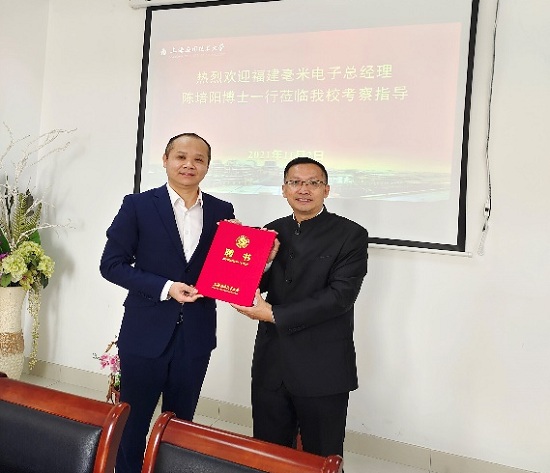 11月2日,福建毫米电子有限公司总经理陈培阳博士一行来访人文虎扑nba并洽谈合作事宜,人文虎扑nba院长张向前热情接待,双方进行座谈交流。