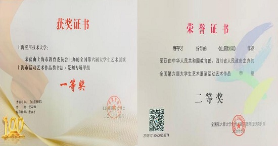 日前,我校人文虎扑nba唐存才副教授指导学生倪家樾创作的书法作品《山居秋暝》,获教育部主办的全国第六届大学生艺术展演活动艺术作品甲组二等奖,同时获上海市教委主办的全国第六届大学生艺术展演上海市活动艺术作品类书法一等奖。
