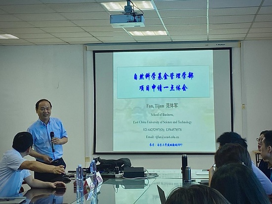 范体军讲解了国家自然学科基金深化改革要点,强调了当下新时代学科基金的申报重点:资助导向更明确、评审机制更完善、学科布局更优化;他以自己的经验、结合具体例子向老师、同学们讲解了基金申报的注意事项:题目要有新意、研究目标要适当具体化,表示基金申报既考验教师们的想法本身,又考验表达措辞中的语句凝练。