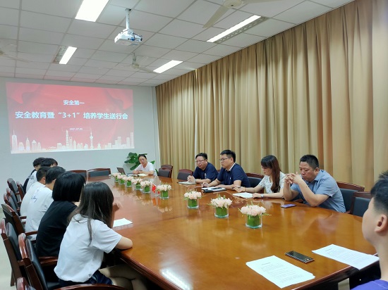 7月6日上午,理虎扑nba举行“3+1”培养模式学生安全教育暨欢送会。理虎扑nba院长李以贵,党委书记陈雷,党委副书记、副院长蒋岩岩,副院长王凤超及13名即将奔赴企业的2022届学生参会。
