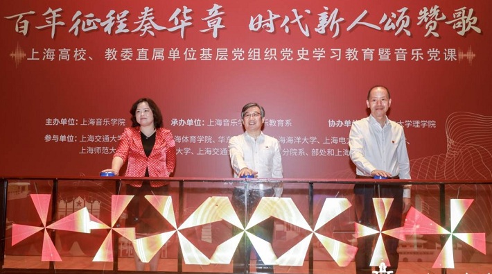 6月20日,机关党委第三党支部参加“百年征程奏华章 时代新人颂赞歌”上海高校、教委直属单位基层党组织党史学习教育暨音乐党课。校党委副书记陈海瑾作为支部党员参加启动仪式,并全程观看音乐党课。