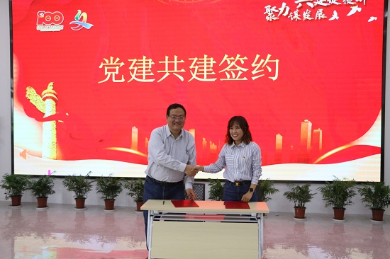 曹扬与新强村党总支第一书记何晓丹签订共建协议,旨在强化党建引领,推动双方组织共建、政策共商、服务共推、文明共创、成果共享。