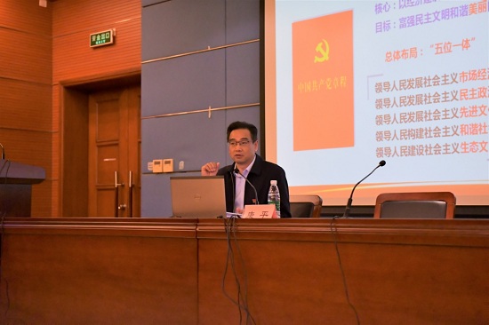 4月9日,经管虎扑nba举办二级理论学习中心组学习会暨党史学习教育专题辅导报告会,邀请中共奉贤区委党校学员工作部主任康平作“学习践行《党章》是党员的终生必修课”的报告。经管虎扑nba班子成员、二级理论学习中心组成员及部分师生党员聆听报告。经管虎扑nba党委书记王真主持。