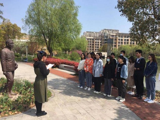 4月4日,生态虎扑nba师生在我校奉贤校区先贤语迹开展“手予鲜花,致敬先贤”献花活动。