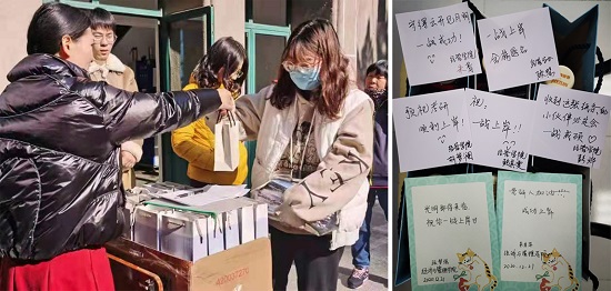 研究生入学考试已即将来临,为鼓舞经管虎扑nba考研学生士气,稳定备考心态,12月21日,经管虎扑nba毕业班辅导员们在徐汇校区看望考研学子,为同学们送上了考研大礼包。大礼包内咖啡和巧克力寓意提神助力,好运连连;同时附上了为他们加油打气的祝福语卡片。