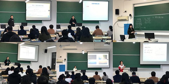 比赛中,来自数学专业的董小妹、徐宗纬、王艳和物理专业的杨晶、刘聚坤、胡蓉蓉等6位参赛青年教师精神饱满、发挥出色,在15分钟的讲课和5分钟的说课时间内,选手们结合自己的专业特点,巧妙地嵌入思政元素,展示了风格各异的教学设计和授课风采,实现了“知识传授”和“价值引领”、“显性教育”和“隐形教育”的有机结合与完美统一。最终,王艳获一等奖,杨晶、刘聚坤获二等奖,胡蓉蓉、董小妹、徐宗玮获三等奖。
