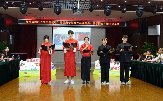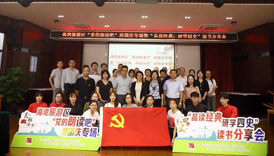 9月15日下午,人文虎扑nba与海湾旅游区共同举办“党的朗读吧”暨“品读经典,研学四史”读书分享会,海湾旅游区党工委副书记、管委会主任姚红,党工委副书记周金华、人文虎扑nba党总支书记周文,党总支副书记、副院长徐津津,师生代表及海湾旅游区基层党组织代表参加活动。