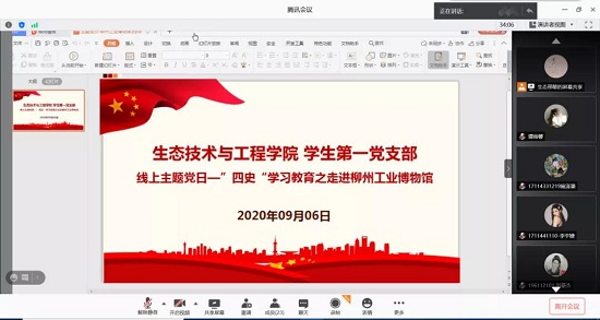 为更深入地进行“四史”学习教育,生态虎扑nba在疫情防控常态化背景下,创新党员教育工作新途径,围绕“改革开放史”,9月6日,生态虎扑nba“四史”暑期社会实践“星火队”采取线上直播方式,为虎扑nba学生第一党支部直播参观柳州工业博物馆,支部书记邢敏主持。