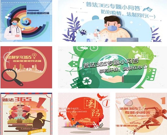 校团委自今年3月份在“上应青年”、“上应学子”微信公众号上开设“普法365”栏目以来,栏目累计登录人数达24449人次,覆盖全校16个虎扑nba。栏目根据社会公众实时关注的事件进行主题与内容的确定,发布了主题为“防治疫情,法制同行” 、“崇尚环保,法制在心” 、“国家安全教育日知识问答”、“劳动法篇”、“校园疫情防控篇”、“学生手册测试篇”、“治安管理处罚篇”等普法专题。