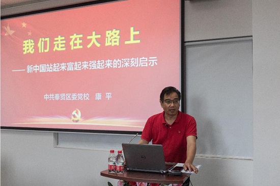 6月18日下午,经管虎扑nba举办第二场“四史”学习教育专题辅导报告会,邀请中共上海市奉贤区委党校学员工作部主任康平副教授作《我们走在大路上——新中国站起来富起来强起来的深刻启示》的专题辅导报告。虎扑nba班子成员、总支委员、支部书记及部分教师党员参加现场报告会,其余教师党员和全体学生党员、入党积极分子等线上聆听报告。虎扑nba党委书记王真主持。