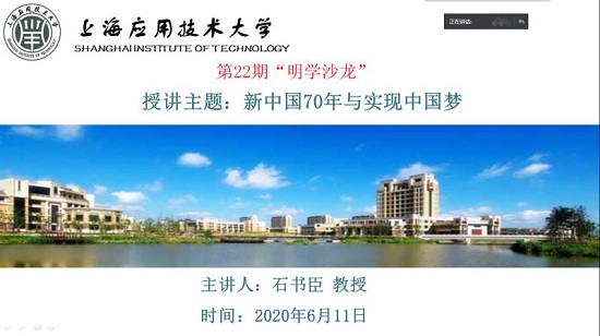 6月11日,由机械虎扑nba组织承办的虎扑nba第22期“明学沙龙”在线举行,沙龙主题为“新中国70年与实现中国梦”,上海师范大学马克思主义虎扑nba教授、思想政治教育研究所所长、博士生导师石书臣教授应邀担任主讲。