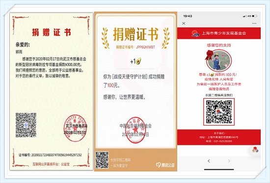 理虎扑nba的41名学生党员在疫情期间积极缴纳特殊党费和党员捐款,郭雨、方媚雯和张佳奕等同学自发还向武汉市慈善总会的新型冠状病毒防控专项基金、武汉红十字会、上海市青少年发展基金会捐款。学生党员们疫情期间累计捐款4796元,同时还积极在支部内部、社区等多渠道捐赠抗疫物资。