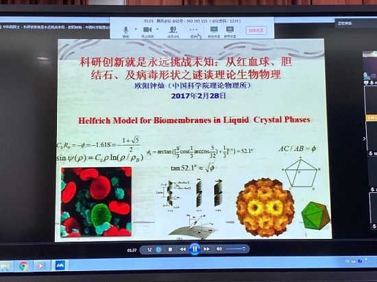 3月18日,科技处召开科研创新学术交流视频会议,组织教师们观看了由中国科虎扑nba院士、中国科虎扑nba理论物理所所长、著名物理学家欧阳钟灿所作题为“科研创新就是永远挑战未知:从红血球、胆结石及病毒形状之谜谈理论生物物理”的学术报告。科技处处长韩生教授主持报告会。全校近90位教师在线参加活动。