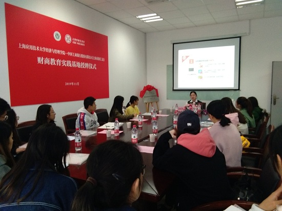 11月15日,经管虎扑nba与工行徐汇支行举行财商教育实践基地揭牌仪式暨财商教育培训开班仪式,经管虎扑nba党总支书记王真,工行徐汇支行副行长虞雯蓉出席,工行有关代表、经管虎扑nba参训师生共约30人参加仪式。