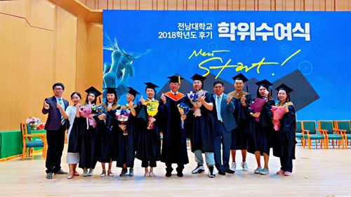 近日,韩国国立全南大学2018届工商管理硕士(MBA)毕业典礼暨授位仪式举行,我校与韩国国立全南大学合作培养的首届中文MBA硕士留学生全部顺利毕业。我校国际教育中心相关负责教师受邀出席,与合作方共同见证了学子们学业有成、为校争光的重要时刻。