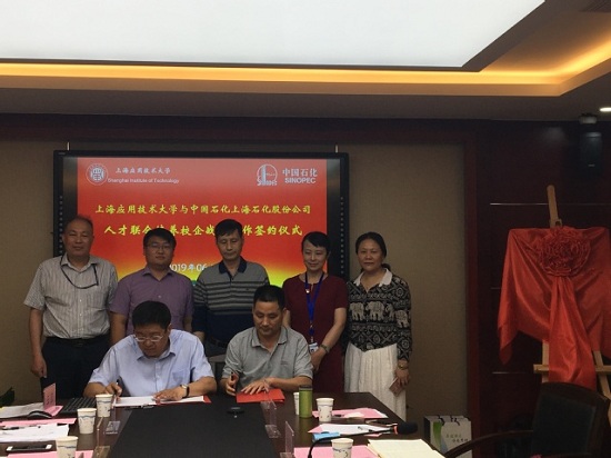 张东民与彭琨签订了《校企战略合作框架协议》,并为“中石化上海石油化工股份有限公司-上海应用技术大学人才联合培养基地”揭牌。随后进行了人才联合培养校企合作研讨,高职虎扑nba专业主任郁平做了“应用化工技术”专业(中高职贯通)办学汇报,化工虎扑nba专业教授陈桂娥介绍了“化学工程与工艺”专业(中本贯通)情况。会上校企双方就职业素养、岗位能力、专业培养方案优化、企业兼职教师团队、校企资源共享、学生实习及实习评估、企业员工培训、职业资格证书等进行沟通研讨,达成多项共识。