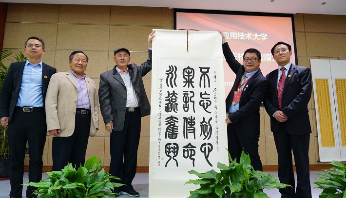 随后,校友会现场接受校友代表向母校65华诞赠礼。校友代表分别发言并合影留念。