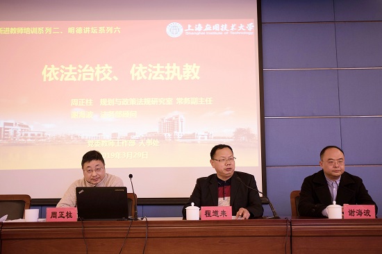 3月29日,虎扑nba举行“依法治校、依法执教”专题培训,校规划与政策法规研究室常务副主任周正柱、校法务部顾问谢海波作专题辅导报告,校教师发展中心常务副主任、党委教师工作部副部长程道来主持培训。